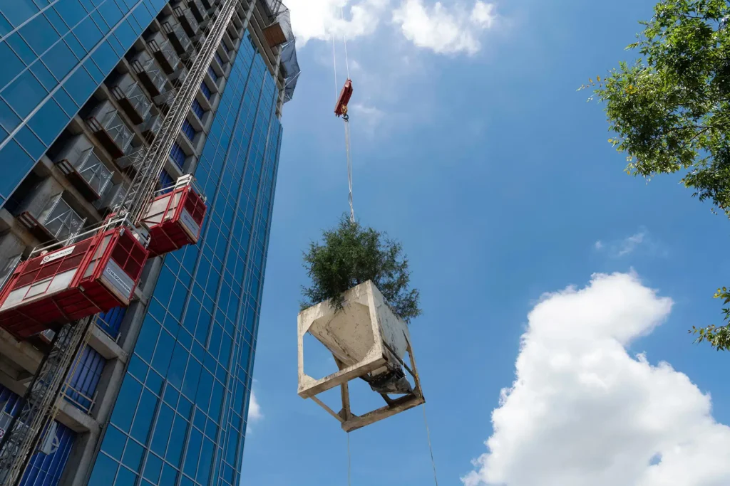 “Topping out” is a construction rite celebrating the building’s highest beam being placed. Raising a tree dates back to early Scandinavian tradition.