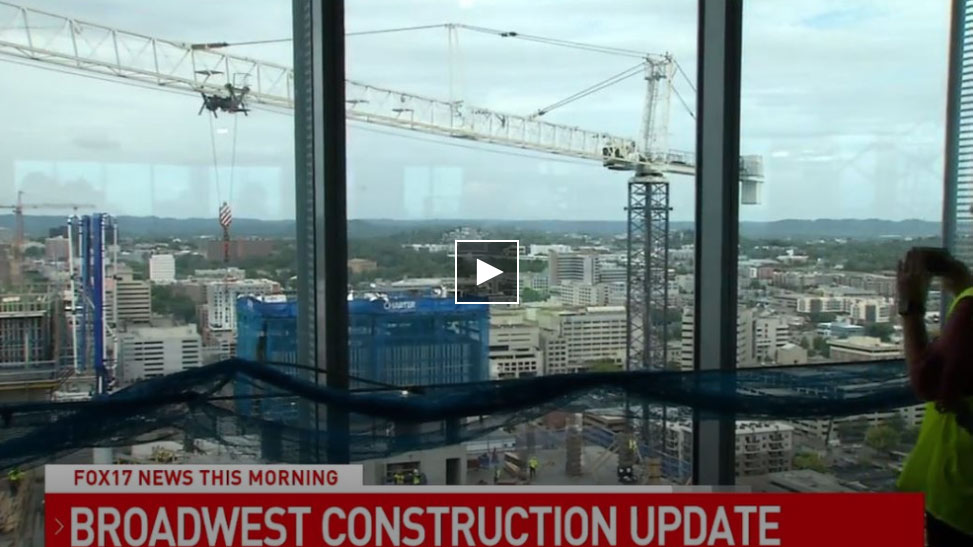 NASHVILLE, Tenn. (WZTV) — The construction happening at the Broadway and West End split in Nashville is now harder to avoid. The two towers of Broadwest are mostly constructed and the sales building for the Residences at Broadwest is now open.